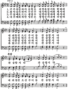 ccm57 [ 찬양 악보 PPT 가사] C 아무것도 두려워 말라 [ 찬양 악보 PPT 가사] C 아무것도 두려워 말라 [ 가사 ] 아무것도 두려워 말라 주 나의 하나님이 지켜주시네 놀라지 마라 겁내지 마라 주님 나를 지켜주시네 아무것도 두려워 말라 주 나의 하나님이 지켜주시네 놀라지 마라 겁내지 마라 주님 나를 지켜주시네 내 맘이 힘에 겨워 지칠지라도 주님 나를 지켜주시네 세상의 험한 풍파 몰아칠 때도 주님 나를 지켜주시네 주님은 나의 산성 주님은 나의 요새 주님은 나의 소망 나의 힘이 되신 여호와 아무것도 두려워 말라 주 나의 하나님이 지켜주시네 놀라지 마라 겁내지 마라 주님 나를 지켜주시네 아무것도 두려워 말라 주 나의 하나님이 지켜주시네 놀라지 마라 겁내지 마라 주님 나를 지켜주시네 내 맘이 힘에 겨워 지칠지라도 주님 나를 지켜주시네 세상의 험한 풍파 몰아칠 때.. 2020. 6. 3. [찬양 악보 PPT 가사] C 아름다운 마음들이 모여서 [찬양 악보 PPT 가사] C 아름다운 마음들이 모여서 [ 가사 ] 아름다운 마음들이 모여서 주의 은혜 나누며 예수님을 따라 사랑해야지 우리 서로 사랑해 하나님이 가르쳐준 한가지 네 이웃을 네 몸과같이 미움, 다툼, 시기, 질투 버리고 우리 서로 사랑해 이다음에 예수님을 만나면 우리 뭐라 말할까 그때에는 부끄러움 없어야지 우리서로 사랑해 하나님이 가르쳐준 한가지 네 이웃을 네 몸과 같이 미움, 다툼, 시기, 질투 버리고 우리 서로 사랑해 2020. 6. 3. [찬양 악보 PPT 가사] C 사랑하는 나의 아버지 [찬양 악보 PPT 가사] C 사랑하는 나의 아버지 [ 가사 ] 사랑하는 나의 아버지 이름 높여 드립니다 주의 나라 찬양 속에 임하시니 능력의 주께 찬송하네 전능하신 하나님 찬양 언제나 동일하신 주 전능하신 하나님 찬양 영원히 다스리네 사랑하는 나의 아버지 이름 높여 드립니다 주의 나라 찬양 속에 임하시니 능력의 주께 찬송하네 전능하신 하나님 찬양 언제나 동일하신 주 전능하신 하나님 찬양 영원히 다스리네 나 주의 이름 높이리 나 주의 이름 높이리 하늘 높이 올린 깃발처럼 주의 이름 높이리 전능하신, 전능하신 하나님 찬양 언제나 동일하신 주 전능하신 하나님 찬양 영원히 다스리네 전능하신 하나님 찬양 언제나 동일하신 주 전능하신 하나님 찬양 영원히 다스리네 2020. 6. 2. [찬양 악보 PPT] Ab 이 눈에 아무 증거 아니 뵈어도(찬545장) Ab 이 눈에 아무 증거 아니 뵈어도(찬545장) 이 눈에 아무 증거 아니 뵈어도믿음만을 가지고서 늘 걸으며이 귀에 아무 소리 아니 들려도하나님의 약속 위에 서리라걸어가세 믿음 위에 서서나가세 나가세 의심버리고걸어가세 믿음 위에 서서눈과 귀에 아무 증거 없어도 이 눈에 보기에는 어떠하든지이미 얻은 증거대로 늘 믿으며이 맘에 의심없이 살아 갈 때에우리 소원 주 안에서 이루리걸어가서 믿음 위에 서서나가세 나가세 의심버리고걸어가서 믿음 위에 서서눈과 귀에 아무 증거 없어도 당신의 거룩함을 두고 맹세한주 하나님 아버지는 참 미쁘다그 귀한 모든 약속 믿는 자에게능치 못할 무슨 일이 있을까걸어가세 믿음 위에 서서나가세 나가세 의심버리고걸어가세 믿음 위에 서서눈과 귀에 아무 증거 없어도 2020. 5. 19. [찬양 악보 PPT] Ab 잠시 세상에 내가 살면서(찬492장) Ab 잠시 세상에 내가 살면서(찬492장) 잠시 세상에 내가 살면서 항상 찬송 부르다가날이 저물어 오라 하시면 영광 중에 나아 가리열린 천국문 내가 들어 가 세상 짐을 내려 놓고빛난 면류관 받아 쓰고서 주와 함께 길이 살리 눈물 골짜기 더듬으면서 나의 갈 길 다 간 후에주의 품안에 내가 안기어 영원토록 살리로다열린 천국문 내가 들어 가 세상 짐을 내려 놓고빛난 면류관 받아 쓰고서 주와 함께 길이 살리 나의 가는 길 멀고 험하며 산은 높고 골은 깊어곤한 나의 몸 쉴 곳 없어도 복된 날이 밝아 오리열린 천국문 내가 들어 가 세상 짐을 내려 놓고빛난 면류관 받아 쓰고서 주와 함께 길이 살리 한숨 가시고 죽음 없는 날 사모하며 기다리니내가 그리던 주를 뵈올 때 나의 기쁨 넘치리라열린 천국문 내가 들어 가 세상 .. 2020. 5. 19. [찬양 악보 PPT] Ab 주 음성 외에는(찬446장) Ab 주 음성 외에는(찬446장) 주 음성 외에는 더 기쁨 없도다날 사랑하신 주 늘 계시옵소서기쁘고 기쁘도다 항상 기쁘도다나 주께 왔사오니 복 주옵소서 나 주께 왔으니 복 주시옵소서주 함께 계시면 큰 시험 이기네기쁘고 기쁘도다 항상 기쁘도다나 주께 왔사오니 복 주옵소서 주 떠나 가시면 내 생명 헛되네기쁘나 슬플 때 늘 계시옵소서기쁘고 기쁘도다 항상 기쁘도다나 주께 왔사오니 복 주옵소서 그 귀한 언약을 이루어 주시고주 명령 따를 때 늘 계시옵소서기쁘고 기쁘도다 항상 기쁘도다나 주께 왔사오니 복 주옵소서 2020. 5. 19. [찬양 악보 PPT] Ab 내 영혼이 은총 입어(찬438장) Ab 내 영혼이 은총 입어(찬438장) 1절내 영혼이 은총 입어 중한 죄짐 벗고 보니슬픔 많은 이 세상도 천국으로 화하도다할렐루야 찬양하세 내 모든죄 사함 받고주 예수와 동행하니 그 어디나 하늘나라 2절주의 얼굴 뵙기 전에 멀리 뵈던 하늘나라내 맘속에 이뤄지니 날로날로 가깝도다할렐루야 찬양하세 내 모든죄 사함 받고주 예수와 동행
